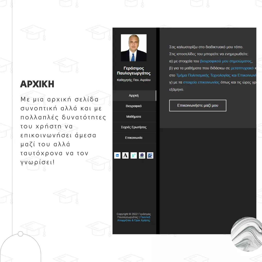 Μια ιδιαίτερη συνεργασία με βασικό στόχο τον εκσυγχρονισμό της σελίδας του βιογραφικού αλλά και εστίαση στο ταξίδι και την εμπειρία του χρήστη. Η σελίδα του κυρίου Παυλογεωργάτου ήταν μια δουλειά διαφορετική από τις υπόλοιπες, καθώς η προσήλωση και προώθηση του βιογραφικού ενός καθηγητή αποτελεί πραγματική πρόκληση!