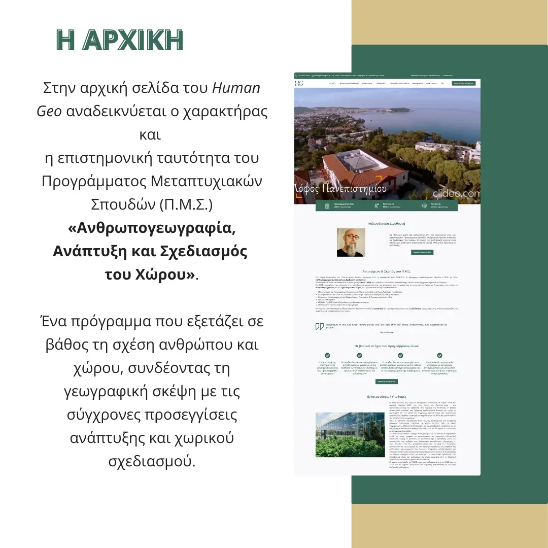 Η ομάδα του Human Geo μας προσέγγισε με ένα ξεκάθαρο όραμα: να φτιάξουμε μια σελίδα που να αντικατοπτρίζει πλήρως το πρόγραμμα, τους φοιτητές και το περιβάλλον τους. Από την πρώτη στιγμή, η συνεργασία ήταν άψογη — πλήρης οργάνωση, προσαρμοστικότητα και ανοιχτός διάλογος για κάθε ιδέα και λεπτομέρεια. Ήταν ξεκάθαρο ότι ήθελαν το καλύτερο δυνατό αποτέλεσμα, και εμείς ήμασταν δίπλα τους σε κάθε βήμα για να το πετύχουμε.