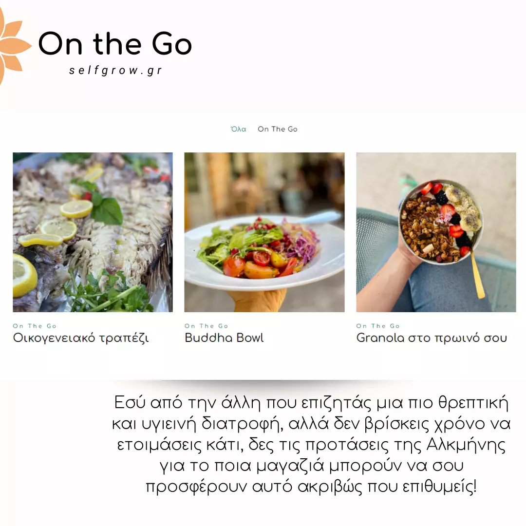 Τέλος, η Αλκμήνη μπορεί να βοηθήσει κι εσένα που ψάχνεις μια γρήγορη λύση αλλά παράλληλα θρεπτική όσο είσαι έξω, καθώς μοιράζεται μαζί σου τις σκέψεις της στη σελίδα On The Go!