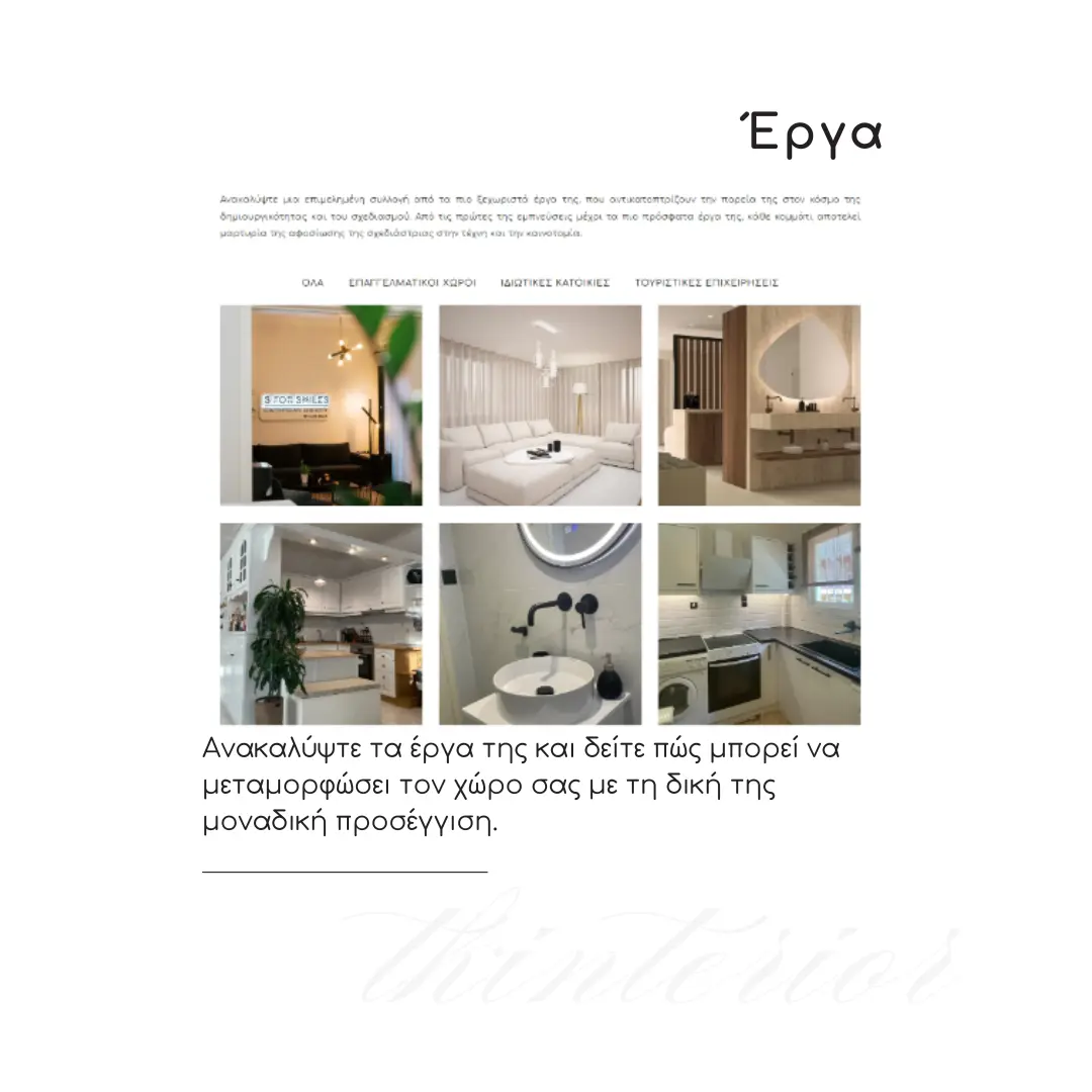 Ανακαλύψτε πως η δημιουργικότητά της μπορεί να μεταμορφώσει το χώρο σας σε ένα μοναδικό και βιώσιμο περιβάλλον, με τη στήριξη ενός ισχυρού διαδικτυακού προφίλ που αναδεικνύει τη δουλειά της.